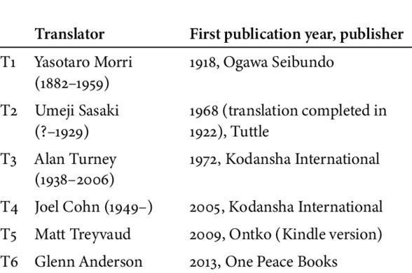 The new translation of Botchan is only the 7th English translation since 1918. It compares very favorably with the two primary translations, being the Turney and Cohn translations published by Kodansha.