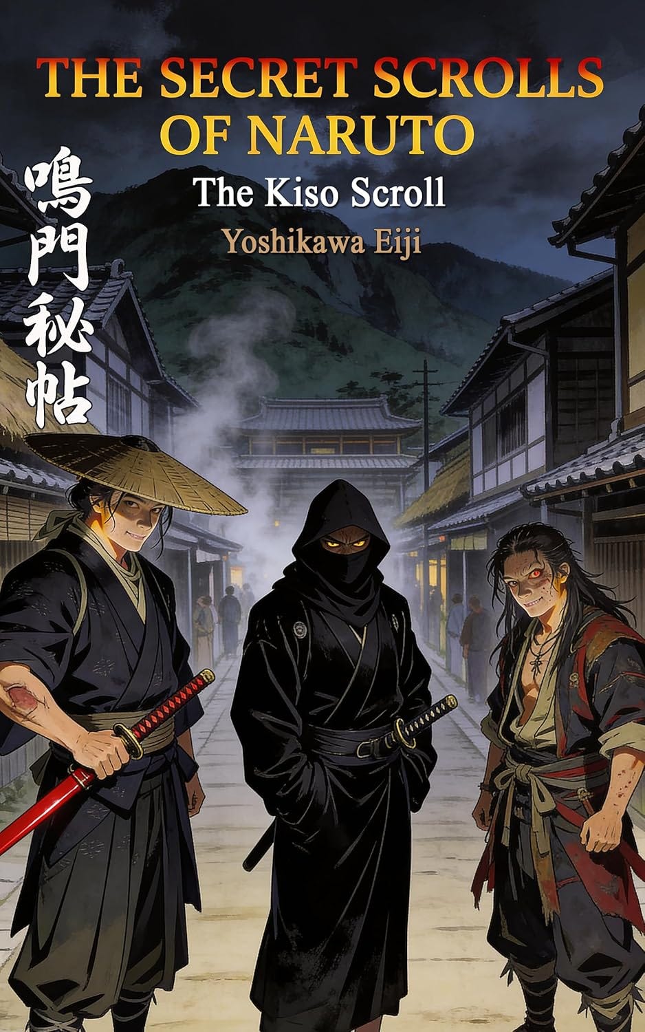 The third book of The Secret Scrolls of Naruto takes the pursuit out of the back alleys of Edo and up the Nakasendō, where the conspiracy climbs from city shadow into open mountain country. Three wicked rōnin push north through Usui Pass after Otsuna and the Tenma detective Mankichi: one with his arm in a sling from a wound that should have killed him, one strolling as though bound for a teahouse, one burning with the heat of his grudge with every league he walks. Somewhere ahead of them walks the swordsman-monk Norizuki Gennojō, who has already drawn blood in Edo and will draw more. And far to the south, deep in the sealed domain of Awa, a woman travels upriver toward Tsurugi-san with a servant and an errand she will not name.