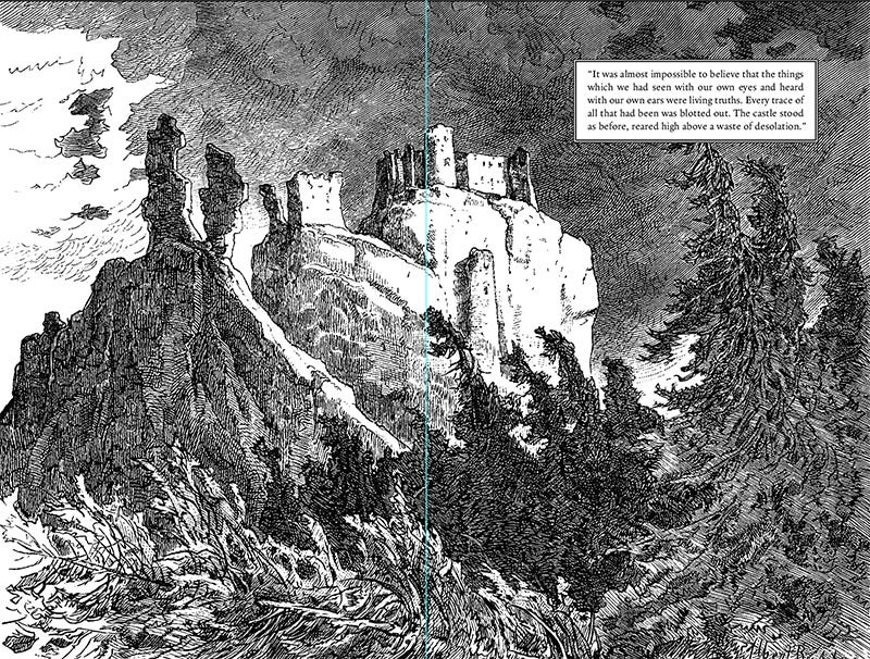 While the rear endpapers show the historic castle in Romania which Dracula was supposed to have inhabited.
