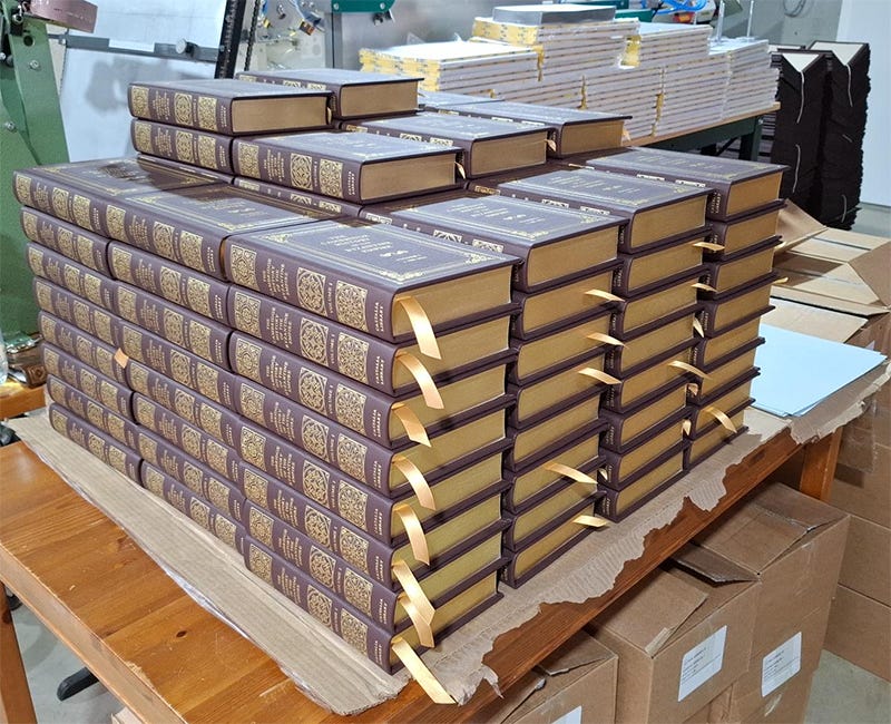 Note that the test editions do not have spine hubs or gilded page edges, since those were not the production processes that required testing.