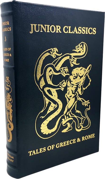 The Junior Classics 2020 Edition Volume 3: Tales of Greece & Rome includes the classic Greek myths, stories about heroes like Hercules, Jason, and Theseus, selections from The Iliad, The Odyssey, and The Aeneid, and tales of the founding of Rome.