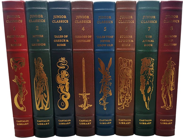 The 10-volume set of The Castalia Junior Classics: 2020 Edition is available from Amazon, Barnes & Noble, and other bookstores in hardcover and ebook editions, but was also made available to serious book collectors in a special leather set with a print run of 150 units that was sold out pre-production. The ten volumes are as follows: