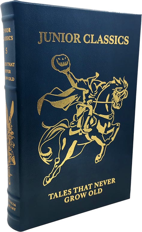 The Junior Classics 2020 Edition Volume 5: Tales That Never Grow Old includes selections from Gulliver’s Travels, Robinson Crusoe, The Legend of Sleepy Hollow, and retellings of famous plays by William Shakespeare.