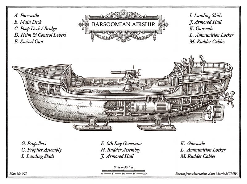 At dawn he awoke to a snarling belly and made his way out onto the roadway. It wasn’t much, a remnant of what was probably a fine highway ages before. Now it was little more than a rough track at its center, the edges of the road eaten away by subsidence or swallowed up by sand. The great granite paving stones, which measured the length of a tall man, were worn smooth by the passage of countless thoats and the iron wheels of great caravans over the millennia. The stones of the road had been quarried from the canal itself, carried here by the power of the 8th ray or by the labor of armies of slaves, the bounty man could not say. He had little interest in the past.