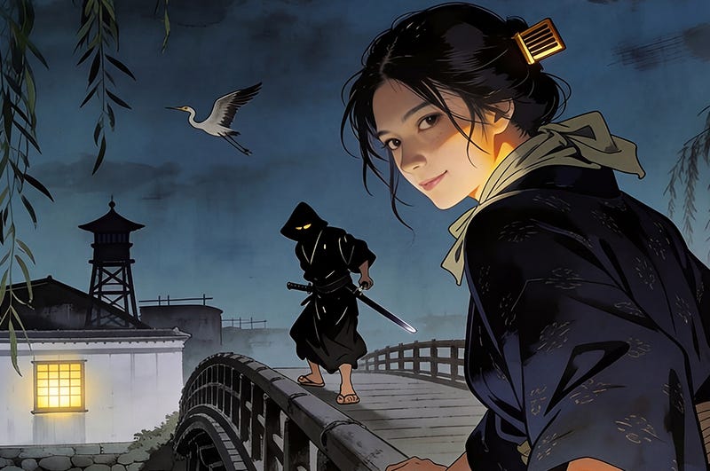 There are ambushes on bridges at midnight, a confidence game played with Dutch cards, a pursuit across a lake by lantern-light, a dying woman’s desperate love, and a final dockside battle against impossible odds as the Lord of Awa’s great ship sails for home with its secrets and its prisoners aboard — leaving Gennojō standing on a hilltop, watching the vessel shrink toward the horizon, swearing that he will follow.